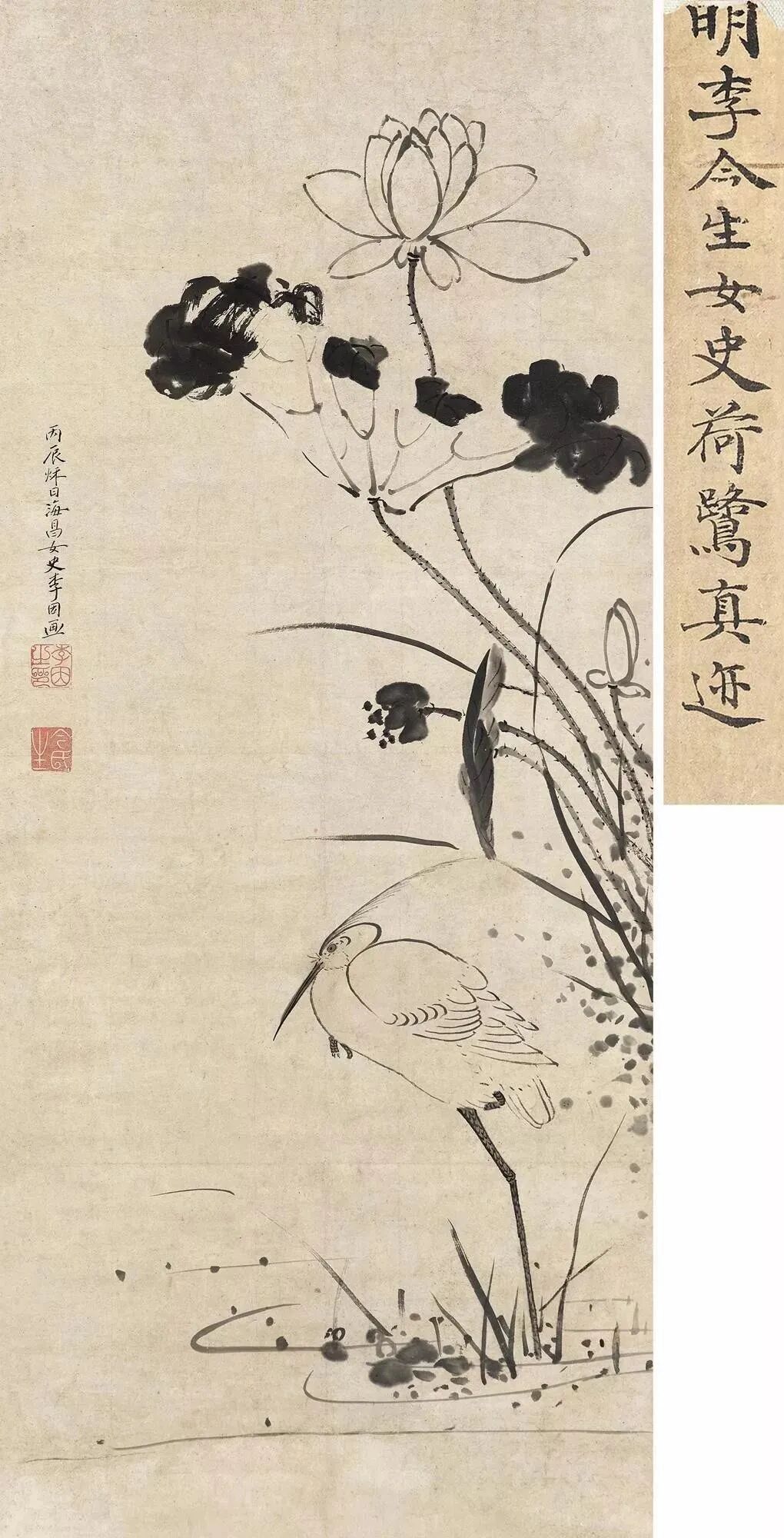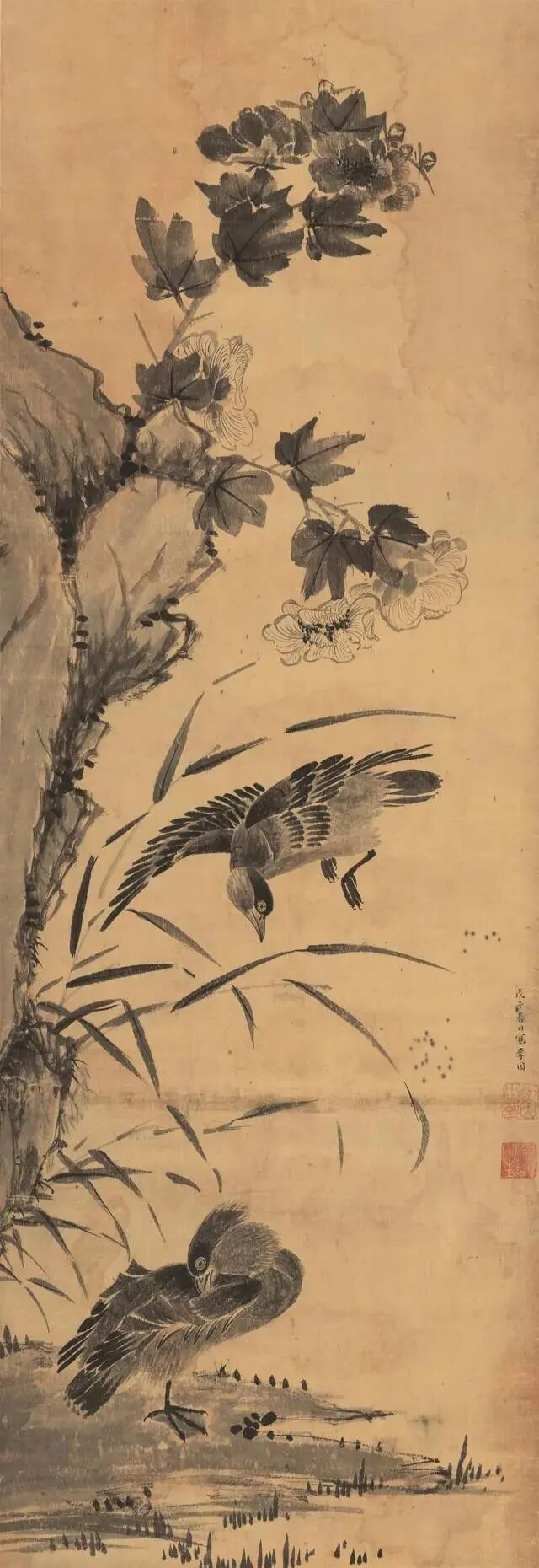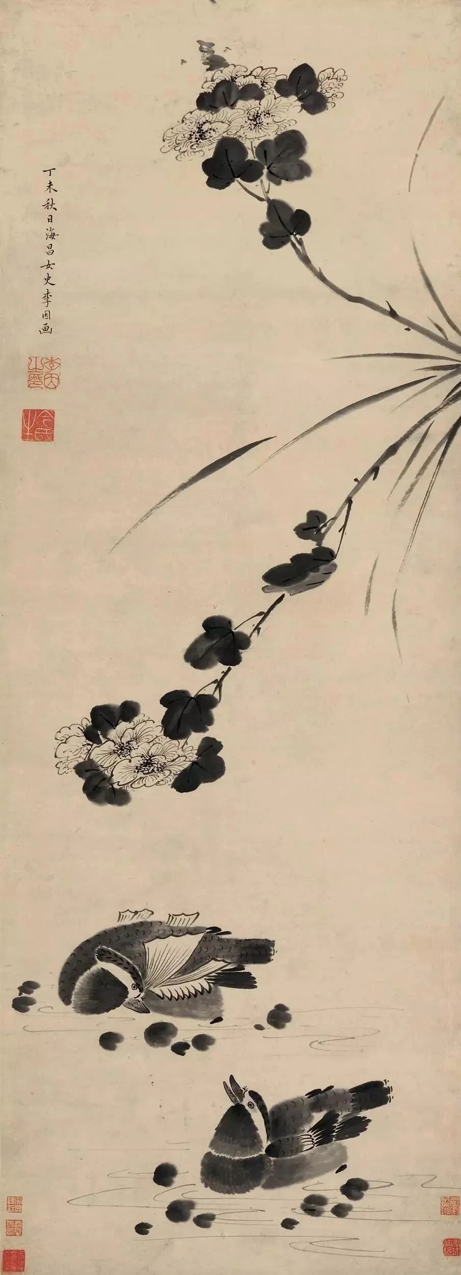 李因《芙蓉鸳鸯图》