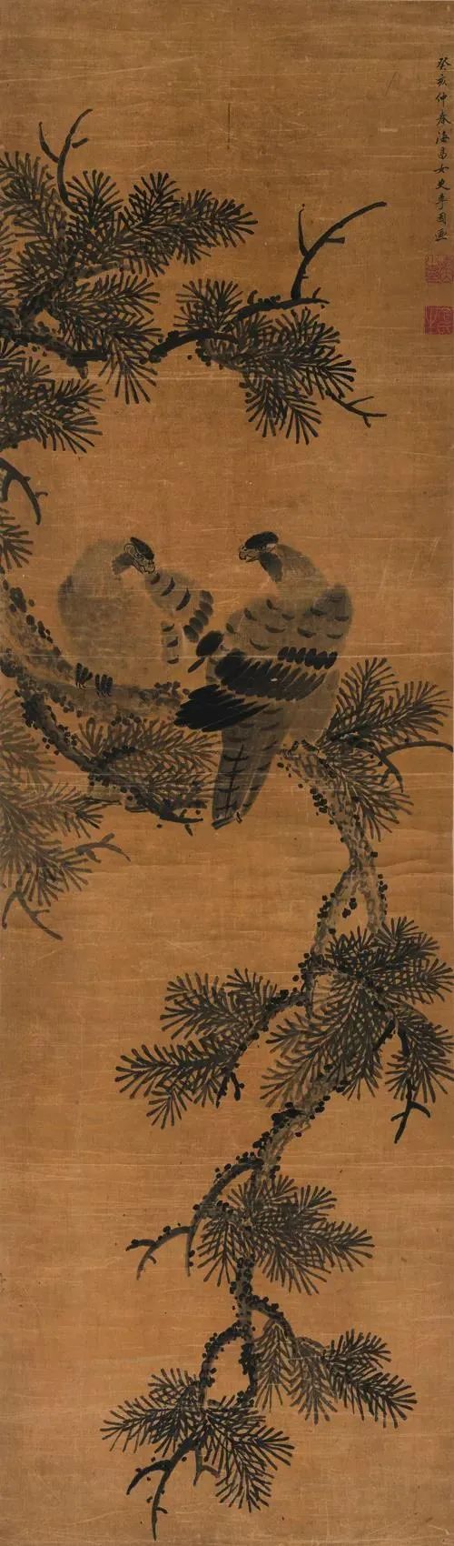 李因 松枝双栖图