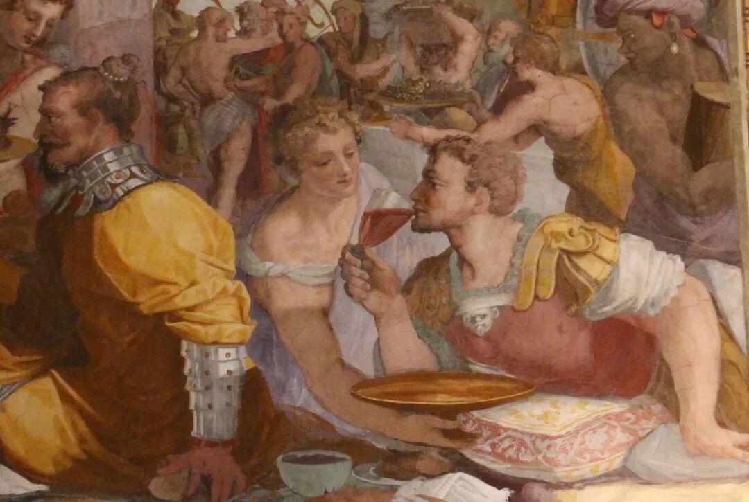 ▲壁画《努米底亚西法克斯宴会》(1578-1582,局部)