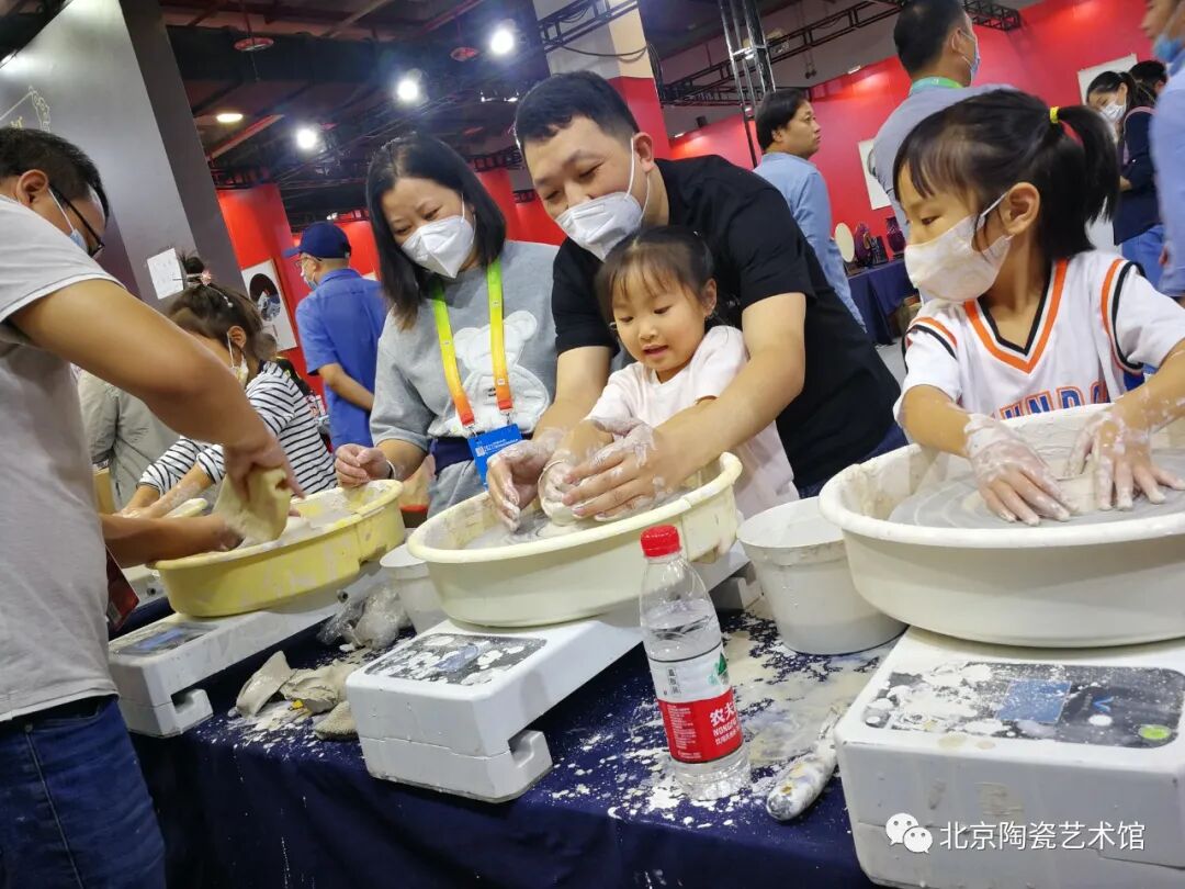 (图为2021年9月20日中国国际陶瓷精品展览会中北京陶瓷艺术馆展区内拉坯体验活动)