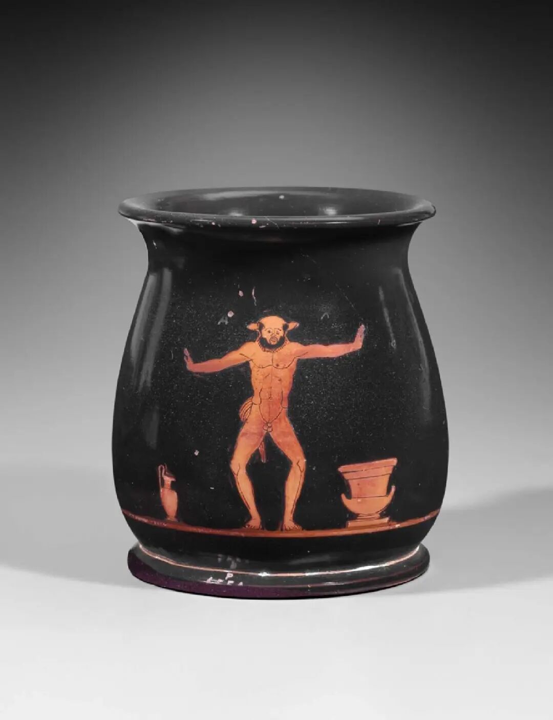 :带有跳舞的萨提尔的杯子,希腊,古典时期,约公元前450年,陶瓷,红色人物