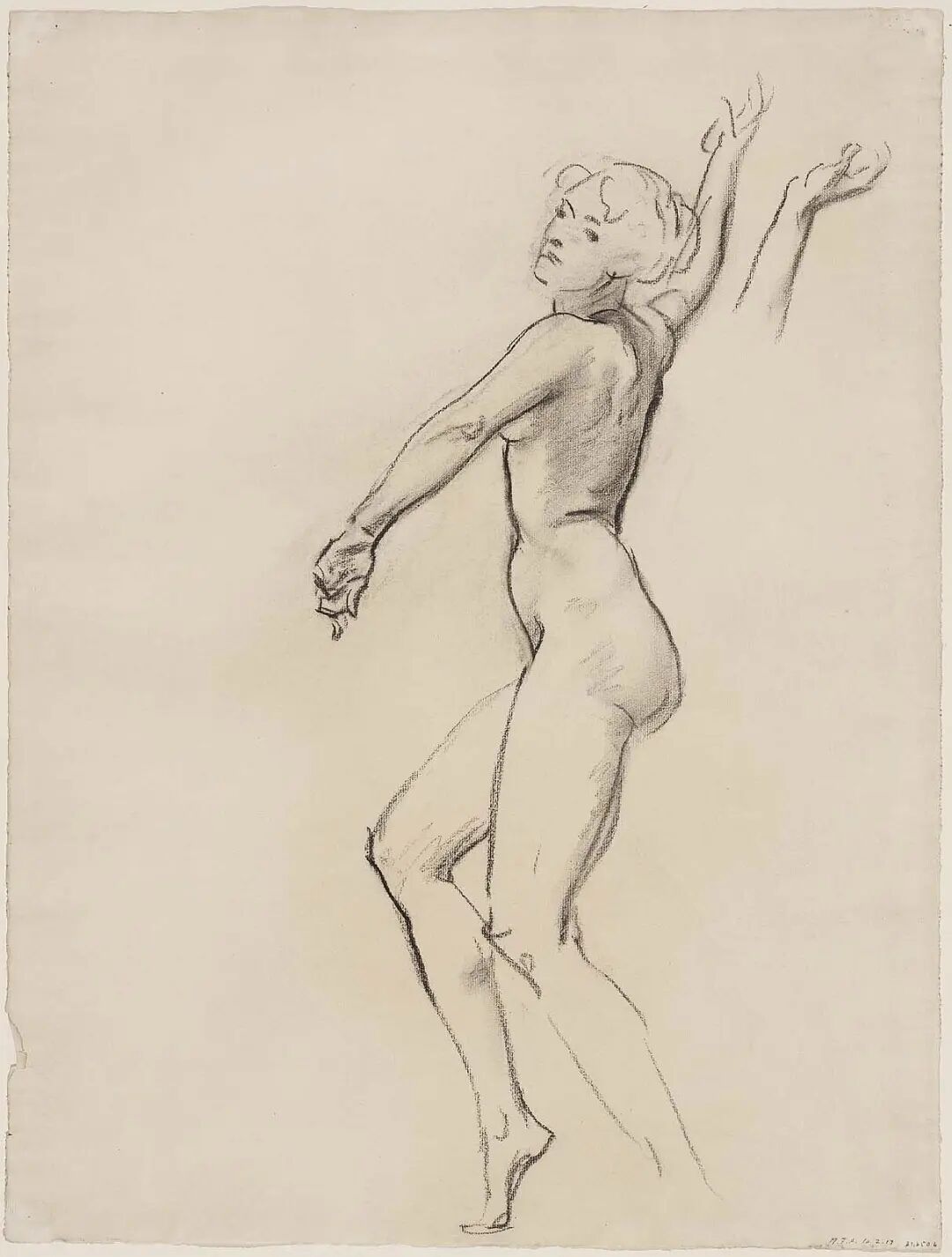 :《舞蹈人物素描》,约翰·辛格·萨金特,1917-1921年,纸上炭笔画