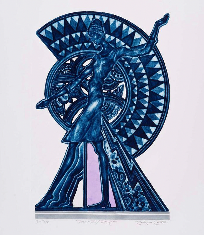 :《舞蹈II》20世纪70年代,埃尔泽·科托, 蚀刻、抛光,金属板印刷,从蓝盘转印,欧版银刻,手工添加紫色水彩