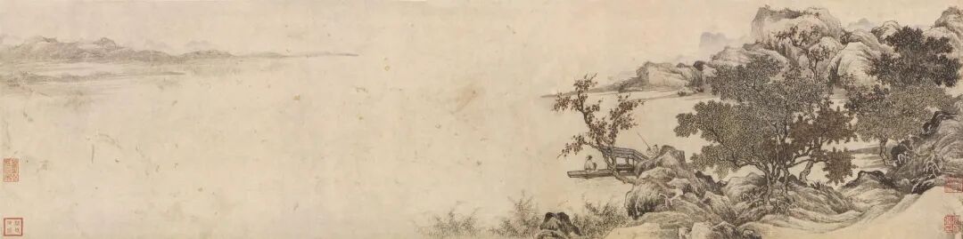 [明]唐寅 山水图 29.2×117.7cm 纸本设色 故宫博物院藏