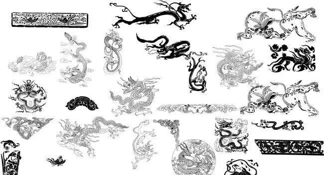 龙纹又称为“夔纹”或“夔龙纹”,是传统装饰纹样。龙是古代神州传说中的动物。一般反映其正面图像,都是以鼻为中线,两旁置目,体躯向两侧延伸。若以其侧面作图像,则成一长体躯与一爪。根据龙纹的结体大致可分为爬行龙纹、卷龙纹、交龙纹、两头龙纹和双体龙纹等几种。
