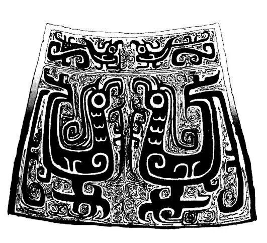 蝉纹多利用简单的对称和条带纹样构成纹样。纹饰的带型排列并重复构成镜像形式,这种构成使图像在很大的成像量上达到视觉的冲击力,是中国图案结构传统手法之一。