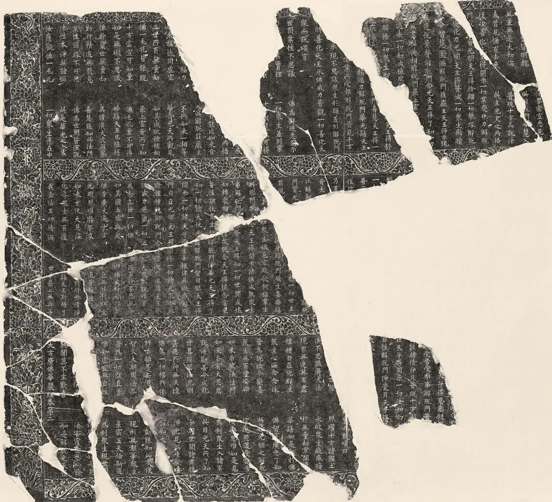 苏州云岩寺塔出土的两重经函,外重为石函,函身四面浮雕一佛二弟子二菩萨像,盖内墨书“金字法华经”等字,内函为鎏金镂花包边楠木经函,函底墨书“舍净财造此函盛金字法华经”。