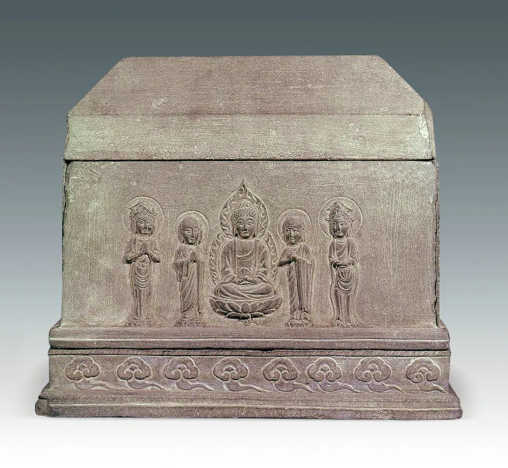舍利容器用来盛装佛舍利(生身舍利)或佛经(法身舍利)。佛舍利多安置在铁函内,杭州雷峰塔地宫及苏州云岩寺塔所出即是。佛经装藏于经函,装饰华丽者如苏州瑞光寺塔发现的镶嵌螺钿漆经函,东阳中兴寺塔出土的北宋建隆二年(961)贴金彩绘石函,写本卷轴装《妙法莲华经》盛放其中。