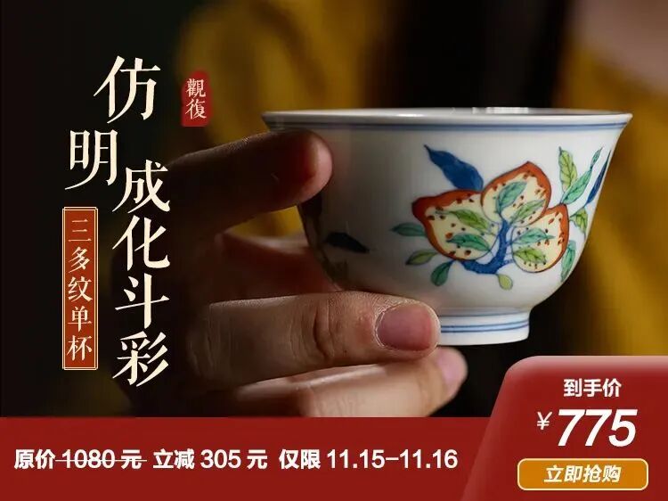 目前,此「三多纹系列盖碗」有‘一碗三杯’及‘单件盖碗’两种配置可选。11月15-16日,正在限时优惠中。