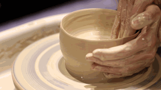 整个过程,拉坯以后不上釉先烧一次,然后烧过以后上釉,再烧一次或多次。