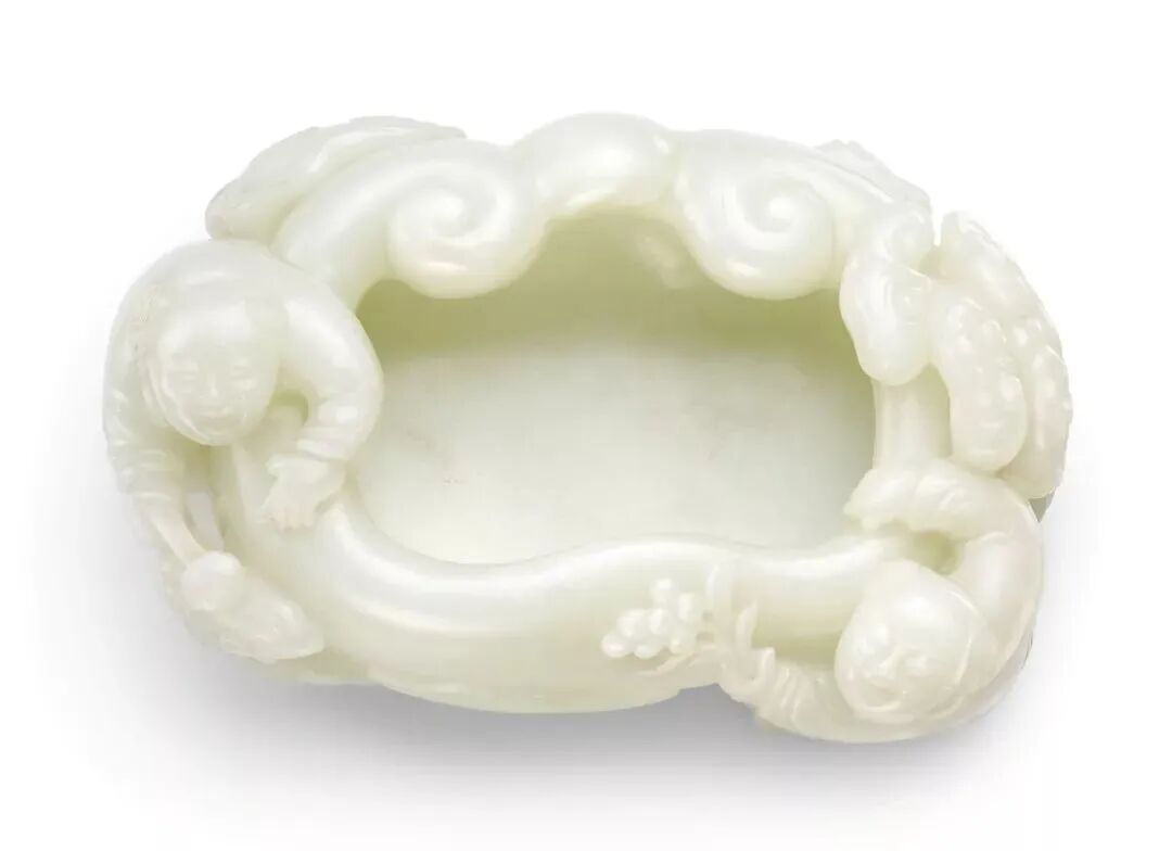 |清乾隆 白玉祥蝠瑞芝纹洗|