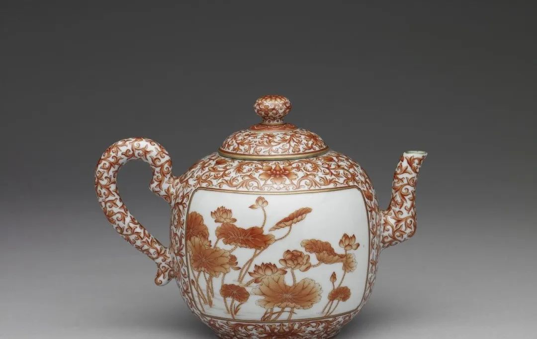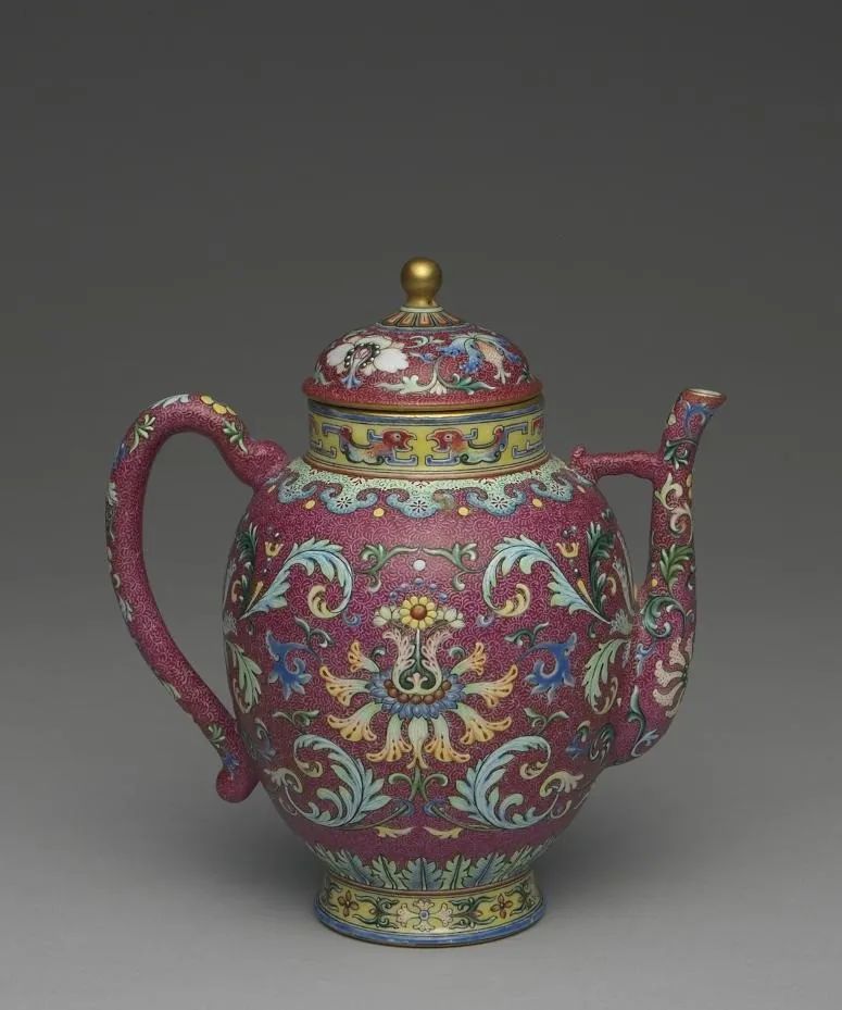 清 乾隆洋彩番莲纹红地茶壶