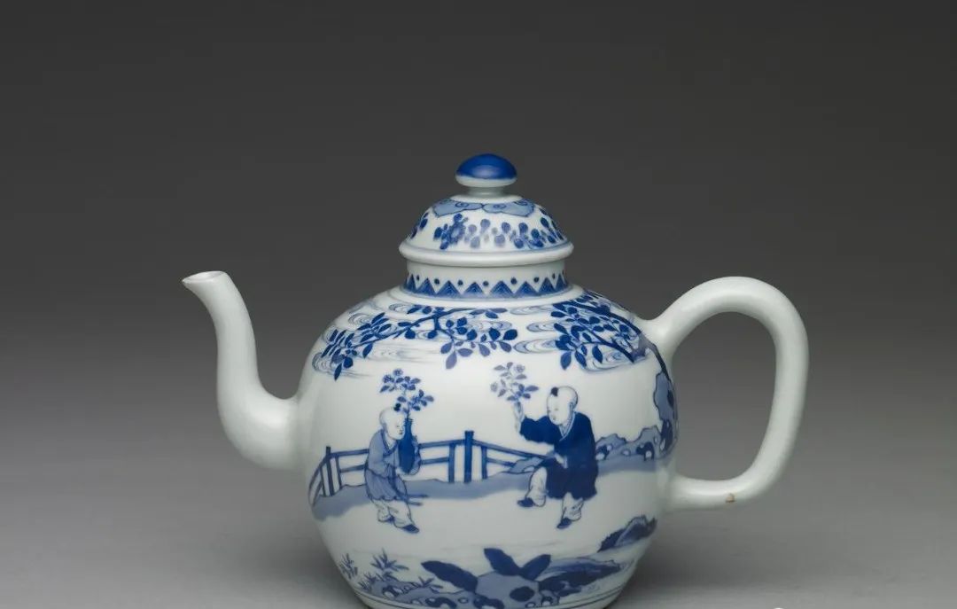 清 雍正青花婴戏图茶壶