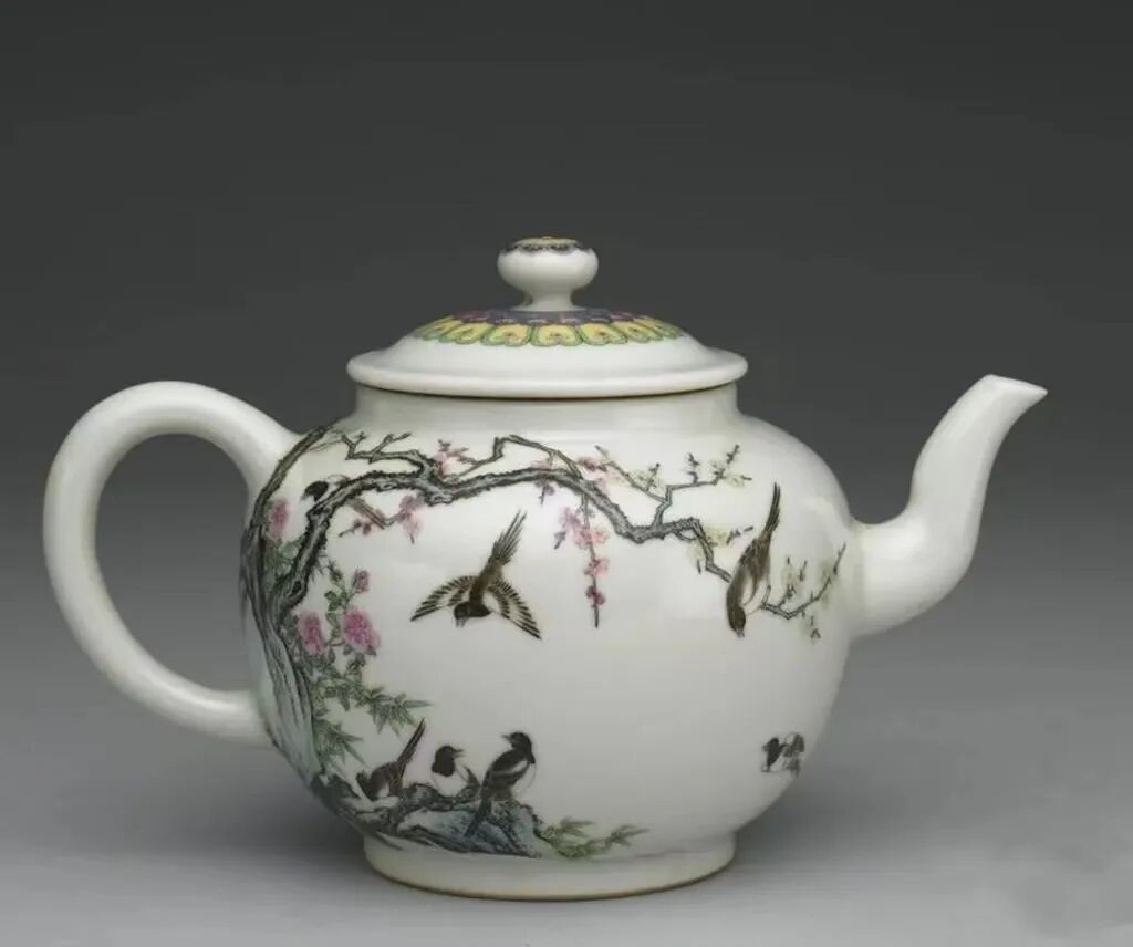 清 雍正竹梅报喜茶壶