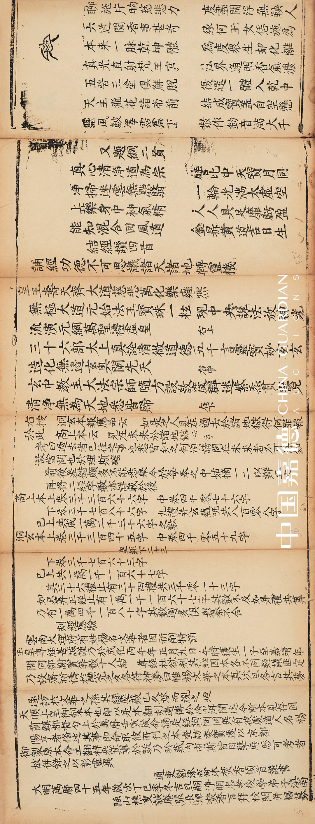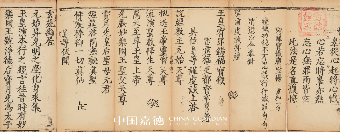 在佛经之外,此次道教典籍也有数种,其中明万历间云南地区刻本《高上玉皇本行集经》犹显珍贵。云南地处我国西南边陲,早期刻书极为罕见,此为其一,甚为珍贵。