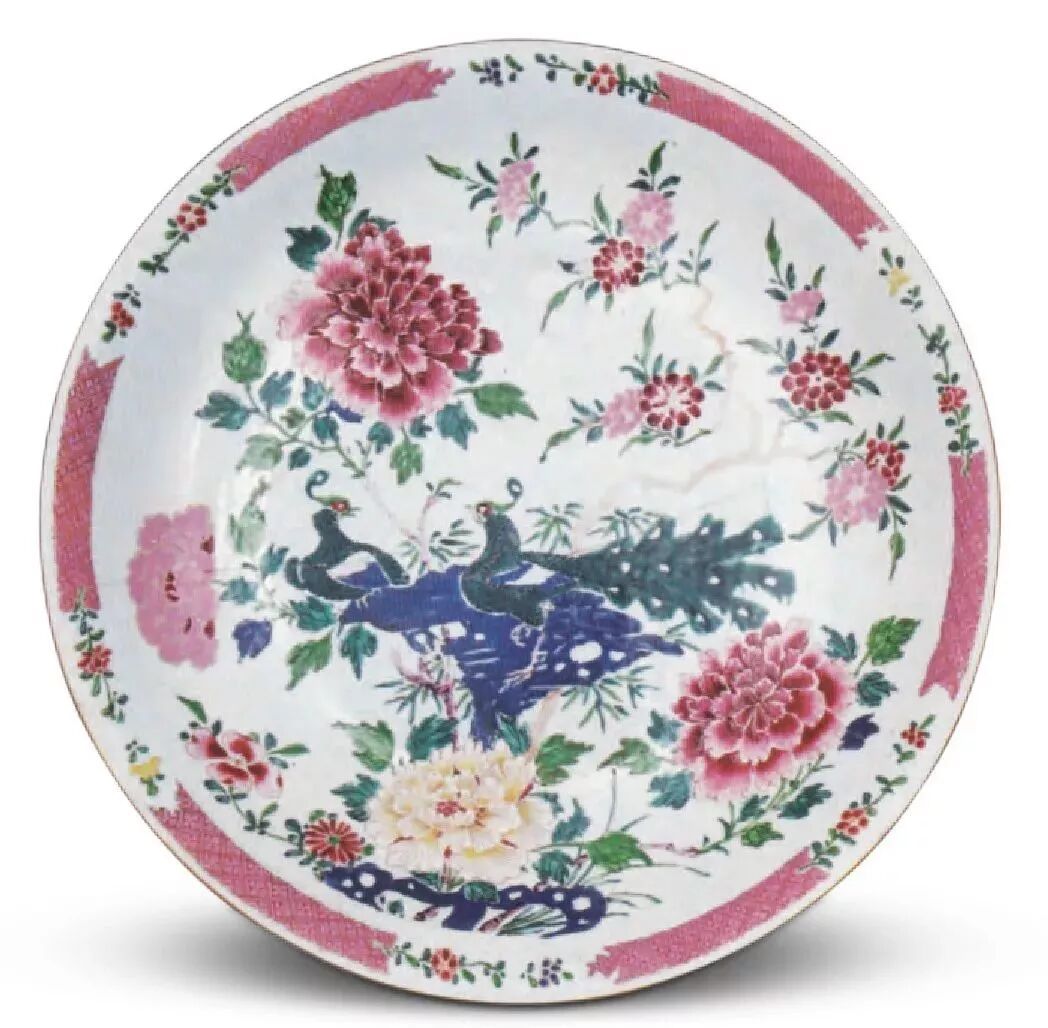 清乾隆 粉彩孔雀牡丹纹汤盆 北京故宫博物院藏