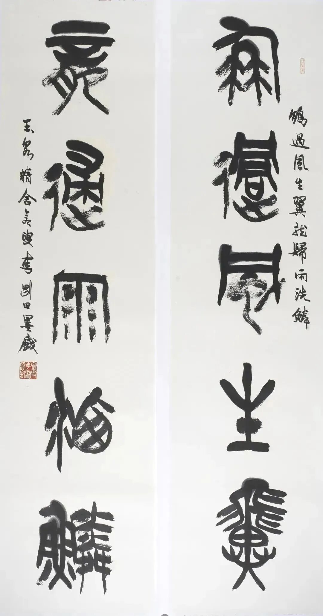 展览以“心迹双清”为题。“心迹”,在其印学、书学的论析中明晰,在书法、篆刻的创作中映现。他的印学、书学论析往往能切时中弊,不落旧套。他的篆刻取法战国玺,汉官印、凿印,又从黟山派诸名家中广收博取。他的书法诸体皆善,尤以篆书为最,其篆书于石鼓楚篆中获取主型,以“刻”法入书,并佐以汉隶意趣,而成自家路数。其隶书、楷书、行书,乃至于草书,皆风格独特,细观亦皆有“刻”意。他的作品不仅让人“观”,欣赏其外在的形质之美;更重“味”,细品其中的意蕴,于文采风流与翰逸神飞的交融中,感受一位书者的专深与广博,平正与真实。