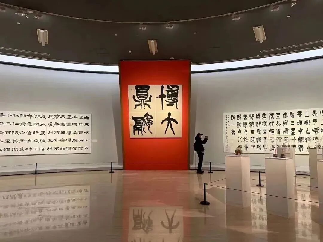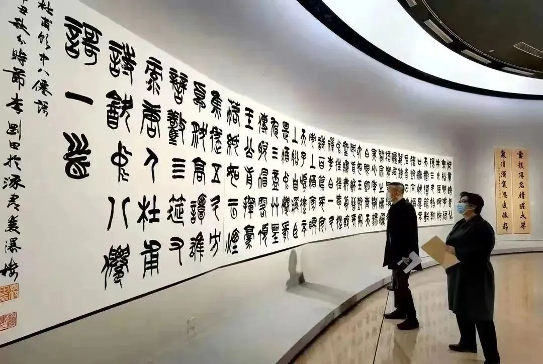 11月13日,由中国美术馆主办,中国书法家协会、西泠印社学术支持的“心迹双清——李刚田书法篆刻作品展”在中国美术馆开幕。作为文化和旅游部2022年度国家美术作品收藏和捐赠奖励项目,展出李刚田书法、篆刻作品122件/组,分“心手五彩相会”“腕底龙虫并雕”“快然好之乐之”三个篇章。全国政协常委、中国美术馆馆长吴为山表示:“李刚田先生的笔墨生活中回荡着金石之声。数十年来,他坚持书法与篆刻相结合、实践与理论相结合、个人创作与教育培训相结合,以耽学不辍,朝夕恪勤的态度,在书法篆刻的创研之路上躬耕乐道,收获累累成果,为我们提供了一个理解当代中国书法篆刻特质的典型范本。”李刚田自1980年入职郑州文联,与书法篆刻结下不解之缘。1985年当选中国书法家协会理事,2007年至2016年任《中国书法》主编,2008年当选西泠印社副社长。2021年底,李刚田向中国美术馆捐赠其代表作篆刻25方、书法15件/组。中国美术馆以此捐赠为契机,策划举办此展以飨观众,并感谢李刚田的捐赠义举。“心手五彩相会”部分是对李刚田创研成果、相关经历的综合展现。在篆书、隶书、楷书、行书、草书以及印学、书学的创作与研究方面,李刚田均取得丰厚成果,体现了他对古与今、雅意与形式、书写与创作等问题的思考和实践。“腕底龙虫并雕”部分展示以篆书书体为主进行“书”“刻”而成的作品,让观众对当代篆书的内容与形式、自然书刻与自由表达等获得新的认知。“快然好之乐之”部分作品展现艺术家广博的创研视野和轻松的生活状态,从中我们能真切地体验到他真实、自然的艺术状态。篆刻,方寸之间,刀奏凌云志;凹凸卷舒,字显流云姿,铿锵其鸣,金石可镂。可者,在心也。心通文,文通法,书以贯之、融之。故,金石书法,自得其环中以应无穷,一片化机。