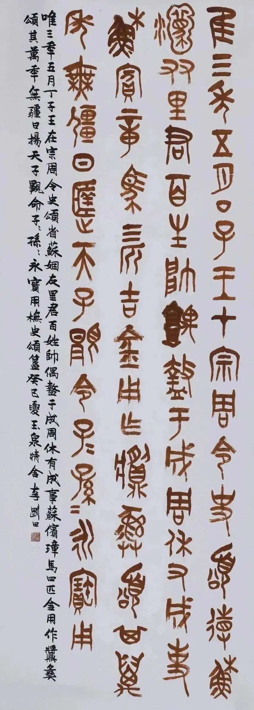 李刚田先生的笔墨生活中回荡着金石之声。数十年来,他坚持书法与篆刻相结合、实践与理论相结合、个人创作与教育培训相结合,以耽学不辍,朝夕恪勤的态度,在书法篆刻的创研之路上躬耕乐道,收获累累成果,为我们提供了一个理解当代中国书法篆刻特质的典型张本。