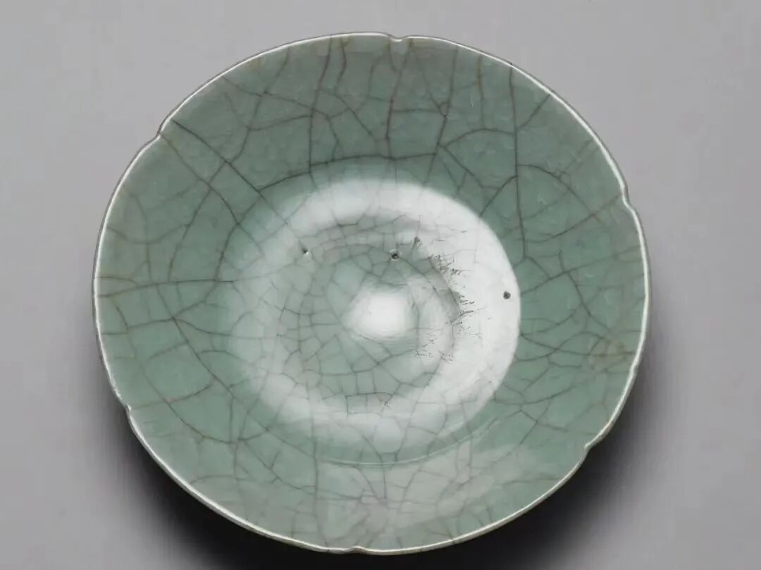 开片的宋代瓷器中,数官窑和哥窑的冰裂纹最为典型。官窑器莹润如脂的粉青、月白色釉面上,大片的裂纹扶疏伸展,如同雪地上的柳枝梅影般婆娑潇洒,且效果精美绝伦,有浑然天成、巧夺天工之感。