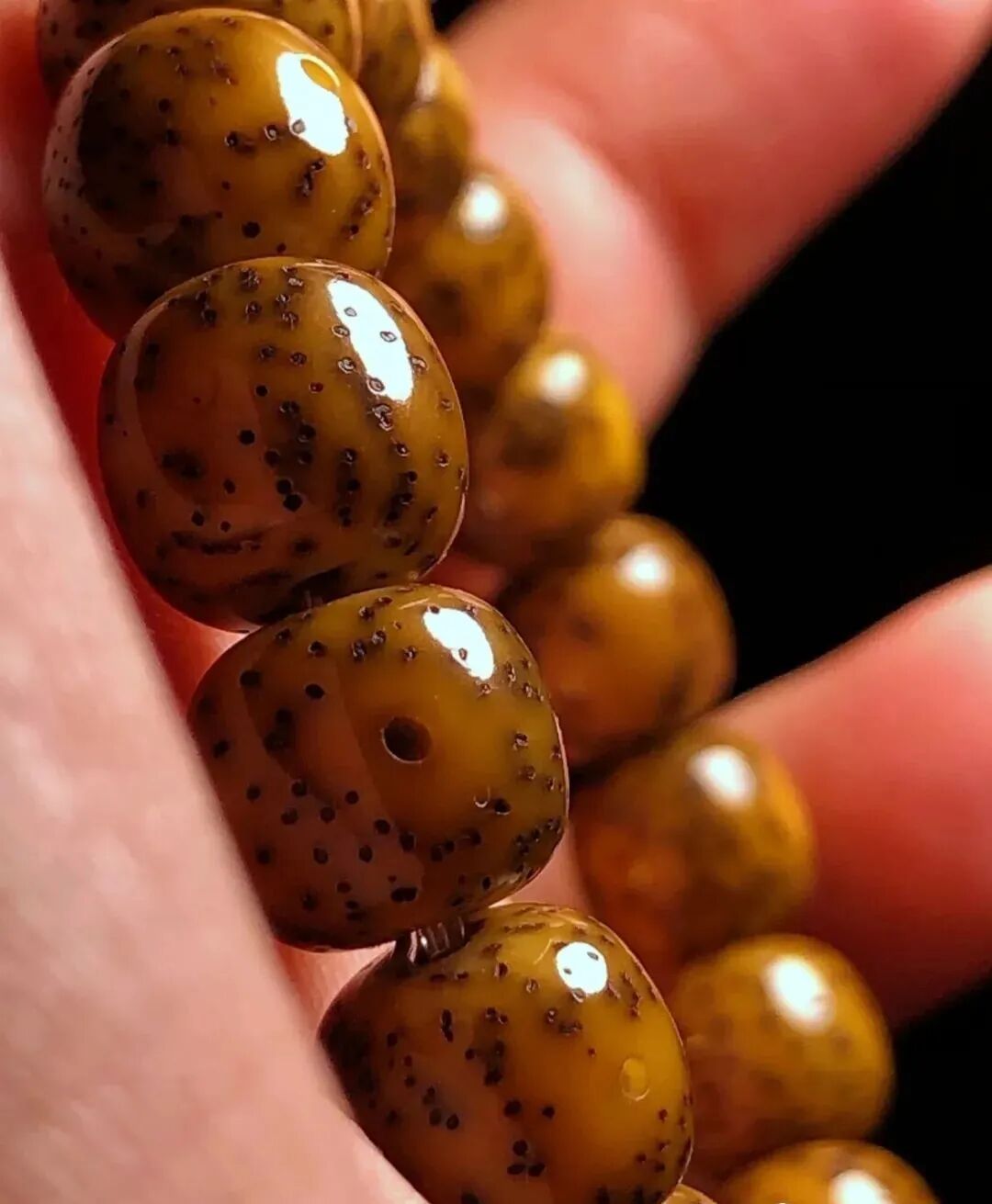 新入手的菩提根,需要用搓澡巾或者白手套搓珠子表面。因为珠子出厂时,不是干净的,表面会有一层蜡和粉末灰尘。