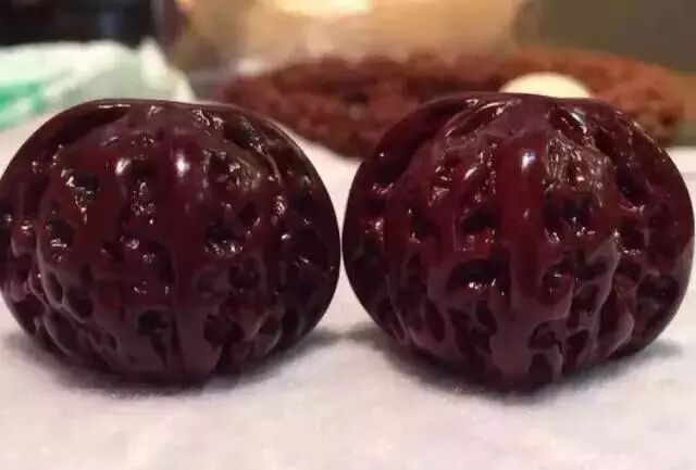 盘玩小叶紫檀一定要轻柔,千万不要大力盘玩,否则会让珠子表面棕眼变得更突出明显,显得料子粗糙。