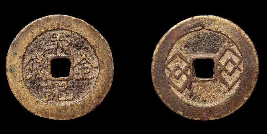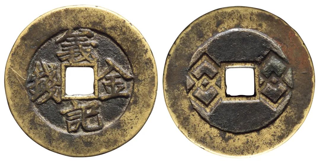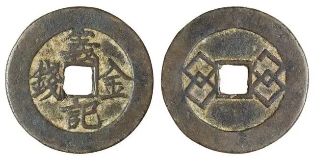 值得注意的是,清朝的文献资料,包括与金钱会有关的县志,都记做“金钱义记”,还没有发现记做“义记金钱”的。这是一种清代时期的会党钱,当然这个会党不是指小刀会,也不是指清朝中晚期的洪门组织,更不是太平天国时期发行的钱币,其实它是一枚清代金钱会的会党凭证,该会党是清代浙江人赵启等八人成立的金钱会。该会可以说是黑社会,也可以说是期末的一个反清组织,大家再来看一下该枚钱币的文饰代表的含义,首先我们看一下它正面的文字,铜钱正面有羲记金钱四字,其中羲字的上单两点写成八字,八字代表创会的8位兄弟义薄云天,而金的上单写成“入”字头,这个入就代表入会的意思。然后是金钱二字各占一边代表着金钱放两边的意思,也包含一种重情重义的意思在里面,而钱币背面穿孔两边各有两个菱形的方脸叠加在一起,也可以说是套在一起,这图案象征着团结一心,一致对外,犹如清末会党用钱。在该组织被清政府镇压以后钱币被大量销毁,目前存世的羲记金钱的数量很少,其收藏价值要比同时期清代钱币要高很多。
