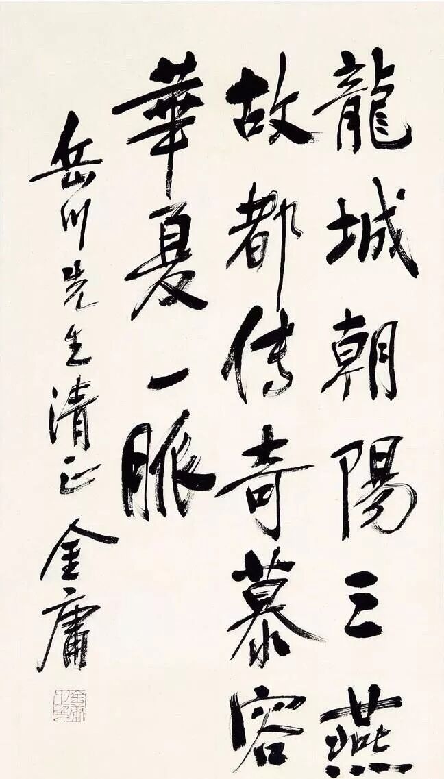 2018年10月30日下午,武侠小说泰斗金庸在香港病逝,享年94岁,真的“退出江湖”了!金庸,原名查良镛,1924年3月10日生于浙江海宁,1948年移居香港。曾任报社记者、编辑,电影公司编剧、导演等。1959年在香港创办《明报》机构,出版报纸、杂志及书籍,1993年退休。先后撰写武侠小说如《射雕英雄传》《神雕侠侣》《倚天屠龙记》《天龙八部》等,作品更屡被翻拍电影。其作品流行的程度,被誉为“凡是有华人的地方,就有金庸的读者”。金庸书院丨金庸书法楹联:飞雪连天射白鹿,笑书神侠倚碧鸳。金庸曾给自己14部中、长篇小说写过一副对联:“飞雪连天射白鹿,笑书神侠倚碧鸳”,分别为《飞狐外传》《雪山飞狐》《连城诀》《天龙八部》《射雕英雄传》《白马啸西风》《鹿鼎记》《笑傲江湖》《书剑恩仇录》《神雕侠侣》《侠客行》《倚天屠龙记》《碧血剑》《鸳鸯刀》的第一个字,而横批则为书名《越女剑》,在金庸迷中广为流传。凡是读过金庸小说的读者,对于慕容这一姓氏都不会陌生。《天龙八部》里的慕容复一心想恢复的大燕国,其实就是五胡十六国时期的“三燕”政权。2004年,考古学家在辽宁朝阳北大街挖掘出“三燕国都”龙城的宫城南门。金庸听闻后,不但为朝阳题写了“慕容街”街名,还题词:龙城朝阳,三燕故都;传奇慕容,华夏一脉。众所周知,在某出版社出版的《金庸全集》中,那些书名都是金庸亲笔书写的,这幅字是其中之一。这是金庸在路过绍兴王羲之写字的地方,在众人盛情邀请之下写的字。金庸给少林寺题字:中国少林文化大展,修武积德,参禅悟真。2003年5月5日,应香港特别行政区的特别邀请,“中国少林精粹文化展”在香港举行为时7天的展出,在非典肆虐的非常时期,“中国少林寺文化珍粹大展”仍引起了香港同胞的极大兴趣。香港文化泰斗、被称作“北季(羡林)南饶(宗颐)”的饶公欣然题写了“少林学”3个大字,金庸大师也题写了“修武积德,参禅悟真”的题词。金庸先生曾送给作家邓友梅一幅字,写的是:风骨铮铮忆铁梅,难忘军旅因雪霜。字体棱角突出,笔势如拨剑技击,正似《笑傲江湖》中令狐冲赞丹青生的那句话:“字中画中,更似乎蕴藏着一套极高明的剑术。”在金庸的武侠作品中,屡屡可以看到以书法融入武功的人,武术家把剑法融入于书法,读其书法又能从中汲取剑法,书中藏剑,剑从书出。图为金庸所写的“华山论剑”四个大字。虽然是被刻在石头上的,但是,我们依然能够感受到金庸的书法魅力。众所周知,《射雕英雄传》中有一段关于华山论剑的描写,十分经典。