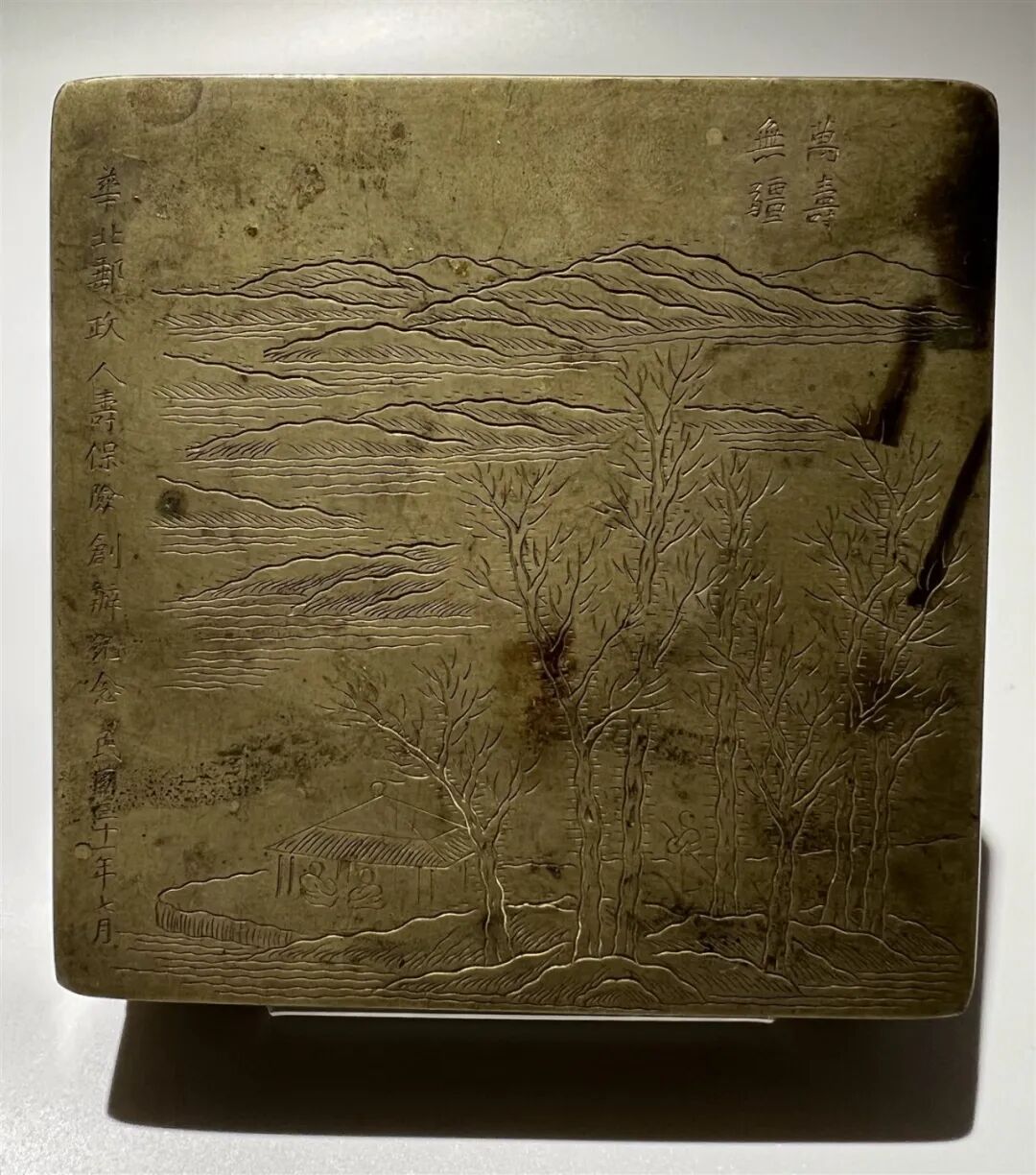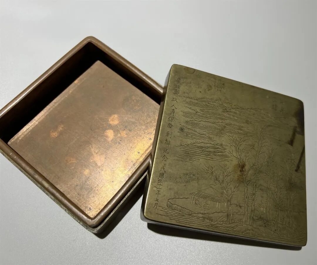 民国三十一年(1942年)华北邮政人寿保险创办纪念“万寿无疆”铜制墨盒