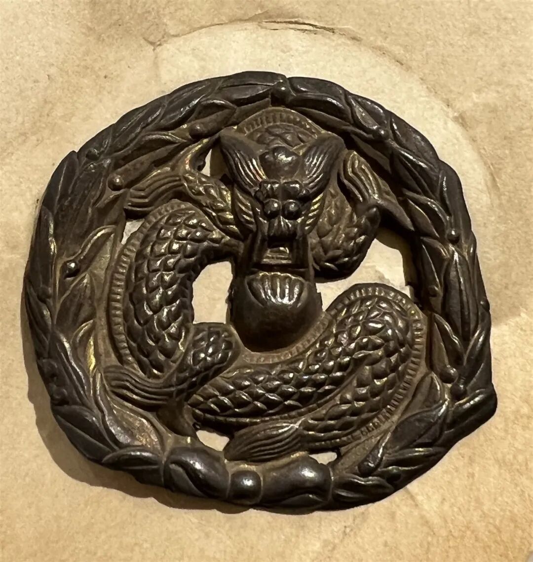 正面图案为步枪与斧头,环铸“黑龙江镇安右将军奖章”字样,背面为鹿头图,红铜夹铸,图案清晰,原汁原味,不多见