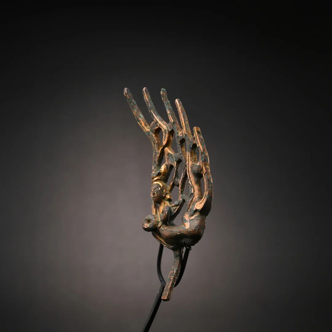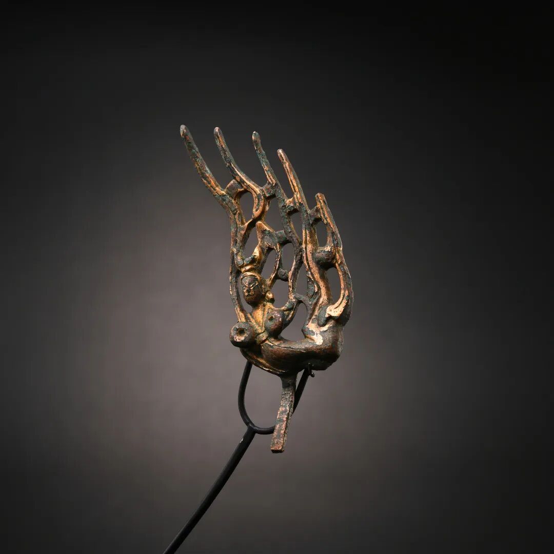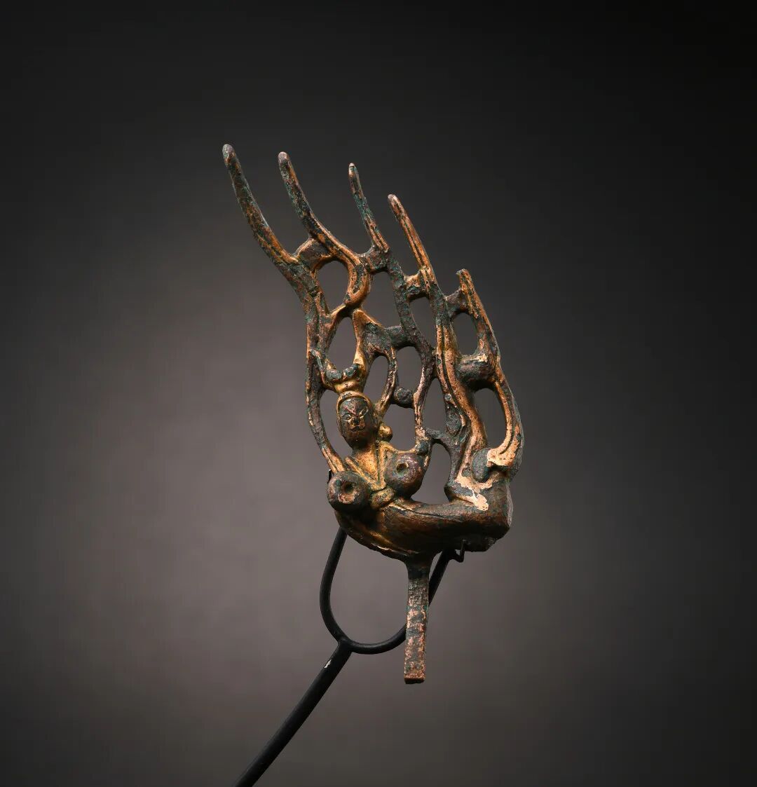 参阅2:2021年香港苏富比秋季拍卖会“佛教文物”专场第3506号铜鎏金飞天像,宽6.9厘米,成交价:HKD 277200。