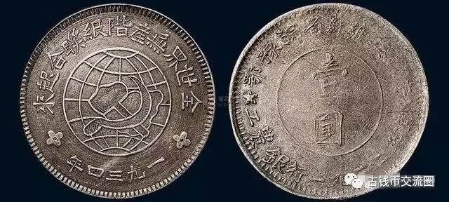 (中华苏维埃共和国国造 壹圆 马克思像)一种是中华苏维埃共和国国造,壹圆,马克思像。另一种是中华苏维埃共和国国币,壹圆,列宁像。