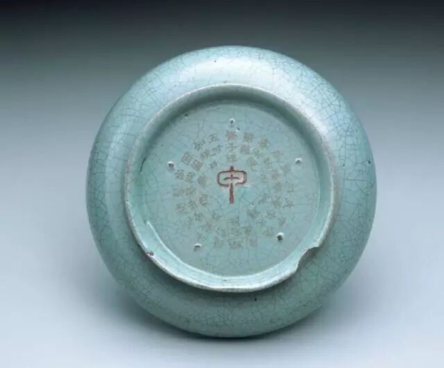 尺寸:高5.6cm 深2.5cm 口纵15.2cm 口横23cm 底纵13cm 底横19.6cm椭圆形盆、突出一圈侈口、深壁、平底、足底间突出一圈窄边稜、四足、足呈云头形。1936年曾参加伦敦中国艺术国际展览会,编号Porcelain No.25。全器满釉不露胎,仅在器底留下六个细小支钉痕。器底刻有乾隆御题一首。明代鉴赏家曹昭在《格古要论》中提到,汝窑瓷器「有蟹爪纹者真,无纹者尤好」。这件水仙盆釉色匀润,通体无文,是传世所见唯一一件没有开片的汝窑瓷器。尺寸:高3.2cm 深2.3cm 口径13.1cm 口径9cm侈圆口、浅壁、壁呈圆形、平底、圈足微外撇。底部有三支钉痕,并刻有乾隆丙午年(1786)清和月,也就是乾隆五十一年四月御题。尺寸:高3.5cm 深2.5cm 口径12.9cm 足径9cm原收藏地:宁寿花园、萃赏楼、抑斋、遂初堂、三友轩、延趣楼其中一处敛圆口、浅壁、平底、圈足外卷。器底有三个细小支钉痕,并刻有乾隆丙申(1776)春御题一首。诗文内容与现藏于伦敦大学大卫德基金会的另一件汝窑盘相同。这件藏于大卫德基金会的汝窑青瓷盘尺寸稍大,底有五支钉痕,并刻有乾隆已亥(1779)夏御题。二者诗文内容完全一致,但台北故宫汝窑青瓷圆洗除了御制诗外,还钤有一「朗润」印,二者在诗文布局上略有不同。尺寸:6.2cm 深4cm 口纵18.6cm 口横26.4cm 底纵15cm 底横21.6cm椭圆形盆、侈口、深壁、平底、底足间突出一圈窄边稜,四足,足部可能原与其他水仙盆相同呈云头形,但现已被磨平。器底六个细小制定恒,并刻有乾隆辛巳年(1761)御题一首。诗文内容和其他二件刻有御制诗的水仙盆完全一致,都提及水仙盆传为猧食器,也就是猫食盆的传说。尺寸:高3.3cm 深2.4cm 口径12.9-13.1cm 足径8.9cm