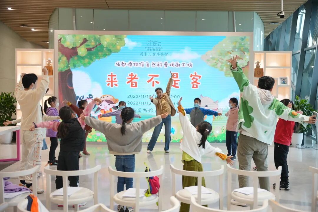 上周,经过半年的精心筹备,2022年度成都博物馆科普戏剧工坊正式回归,带来了首场戏剧课程《来者不是客》。短短两个小时的课程里,小朋友们在老师耐心的指导下,进行了肢体口语锻炼、剧本研读、剧目演排,他们勇敢地突破自我,收起胆怯拘谨,渐渐沉浸于科普故事中,认真揣摩自己的角色,用心去演绎,最终呈现了两场精彩的科普短剧演出。