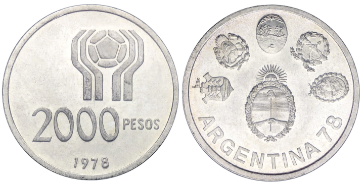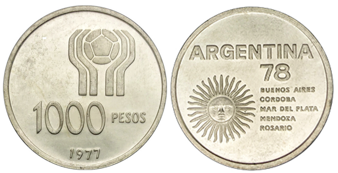 阿根廷作为第一个主办国发行世界杯纪念币的国家。共发行了6枚纪念币,铜币3枚、银币3枚。