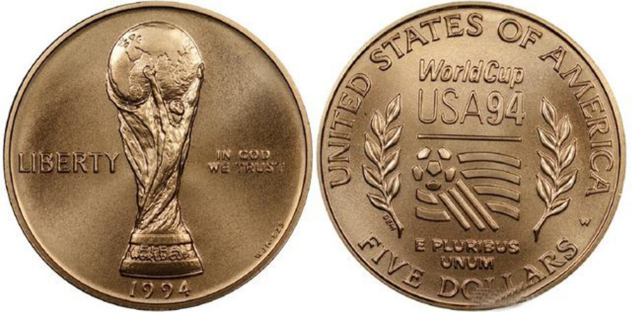 美国世界杯共发行了3枚纪念币,一金一银一镍。