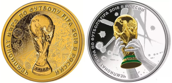 ▲2018年俄罗斯世界杯精制镀金彩色银币