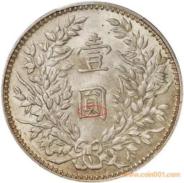又称为“开口贝版”,该币正面袁像肩章条纹明显,五角星显平直,背面嘉禾中间铸造的壹圆二字的“圆”内贝字最下一横未与竖笔连接,其嘉禾叶、穗粗壮饱满,另外,袁像眼中有一从上至下的极短直线,俗称“睁眼”。