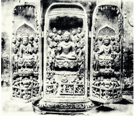 高一尺八寸,宽一尺,天盖与前者相似,佛像的面貌、