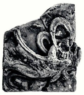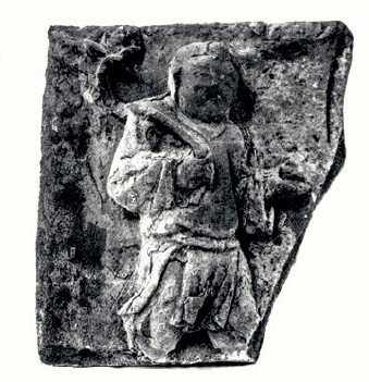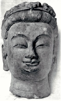 巩县石窟大洞壁千佛塑像残片。市村博士藏。
