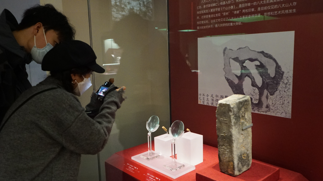 图为观众正在江西省博物馆欣赏八大山人印章。新华社记者袁慧晶摄