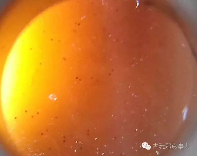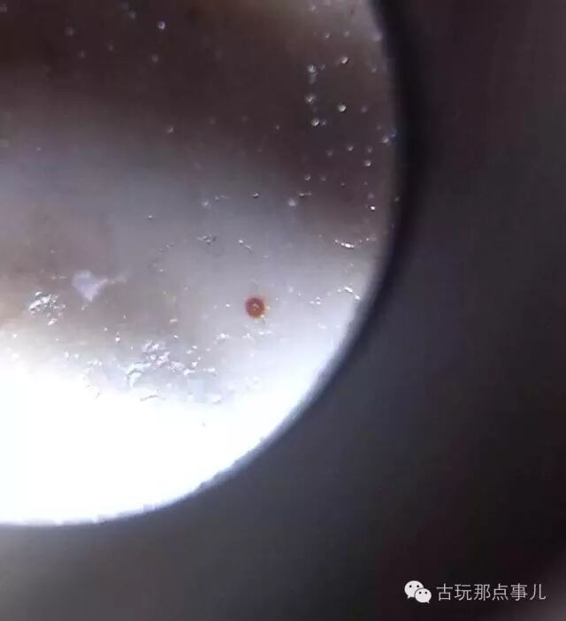 4. 朱砂,借助放大镜观察,能看到天珠内非常细小漂亮的红点。一般人更喜欢朱砂满满的天珠,认为是福报满满。朱砂应该是玛瑙内铁元素表现出来的红色斑点,大约80~90%的至纯天珠或多或少有朱砂(旁系天珠基本没有朱砂)。据说原本没有朱砂的天珠佩戴后可能产生(但是不知道得戴几百年几千年才行?)。另外很多普通红玛瑙内部也有很多朱砂点,所以朱砂这一特征要综合考虑。