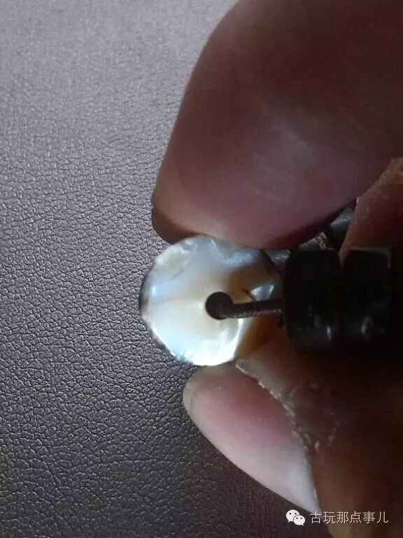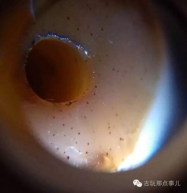 5、孔道,古珠的孔道是手工用竹木杆加金刚砂磨制,这是个费工费时的过程,产生的孔道非常光洁;现代做假是用电钻快速开孔再作抛光,仔细比较是有区别的。