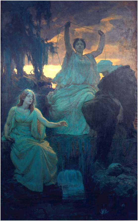 ▲ [奥] 阿洛伊斯·德鲁格《诺伦三女神》,1895年,布面油画,354 x