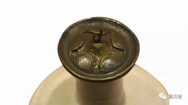 白釉莲纹金装银瓶卷枝钮覆叶纹鎏银盖