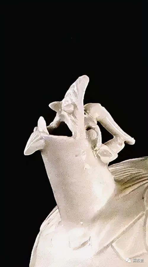 定瓷还有集艺术性与实用性为一体的器物,如静志寺地宫出土,通长19.3厘米,口宽8.4厘米的白釉波浪纹法螺。