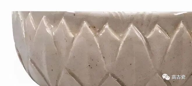 早期定窑器物的口沿几乎都施有釉,到了晚期,一些器物的口沿往往不施釉而露出内里的瓷胎,称为“芒口”。