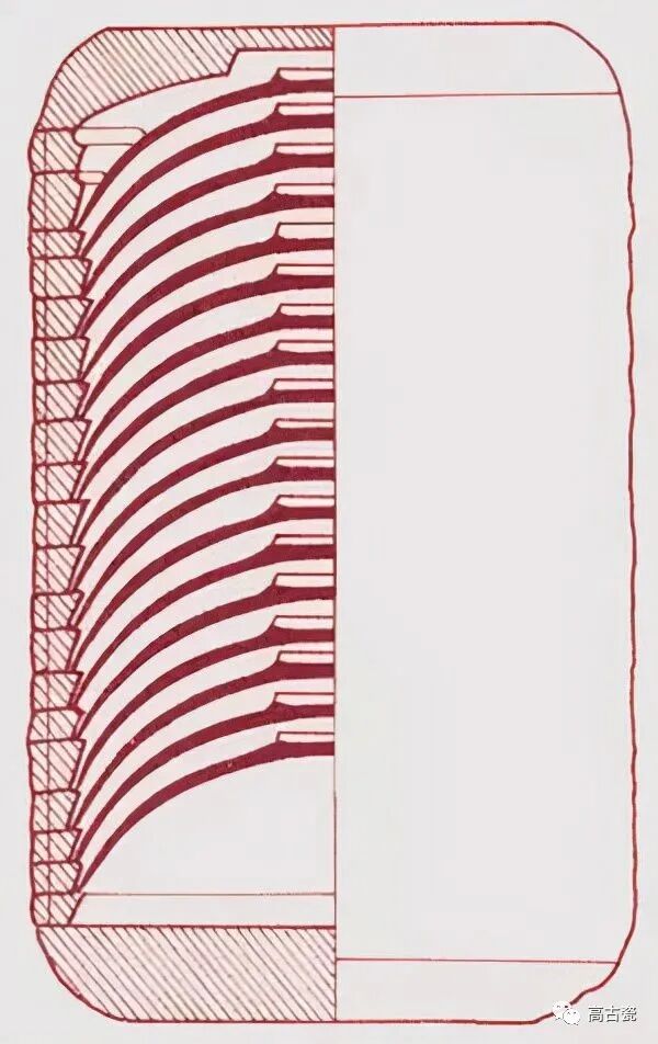 这种匣钵中的器物皆由特别的环形支圈固定,待烧制的瓷器也都是倒转覆放,也正因为覆放,器物的口沿部分都要剐去一圈釉层,使其露出胎骨,这样才能安置于支圈上,而最后烧成之后,器物随之形成“芒口”。这里需要提及的是,支圈覆烧工艺并不只是单单为了扩大产量,定瓷的一些大型盘碗口,器壁轻薄如云却很少变形,这也必须归功于支圈覆烧的新工艺。