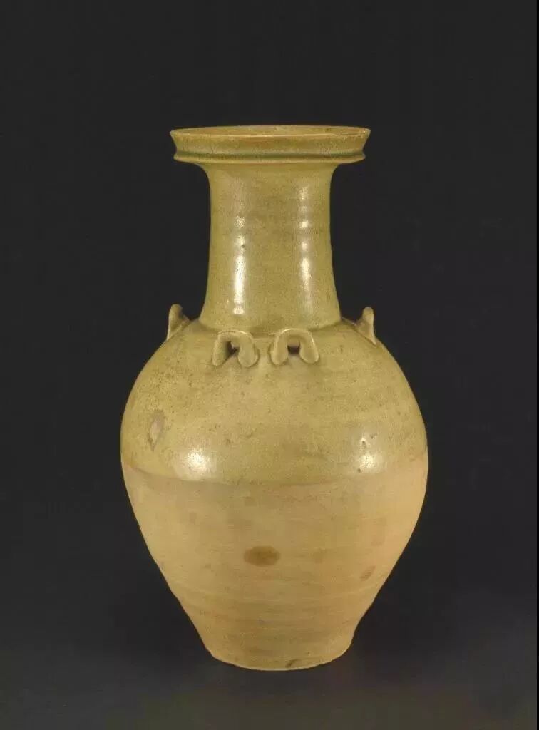 折肩:造型为从肩至腹有明显的转折,转折外出现棱角。典型器如元龙泉窑双风耳瓶。