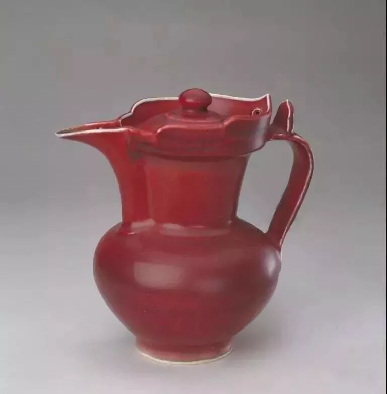明宣德鲜红釉僧帽壶